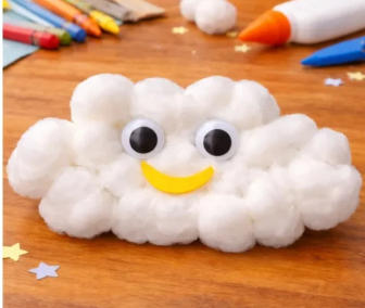 Give each child a cloud cutout and let them cover it with cotton balls using glue to make a soft, fluffy cloud. Add googly eyes to bring their cloud to life.